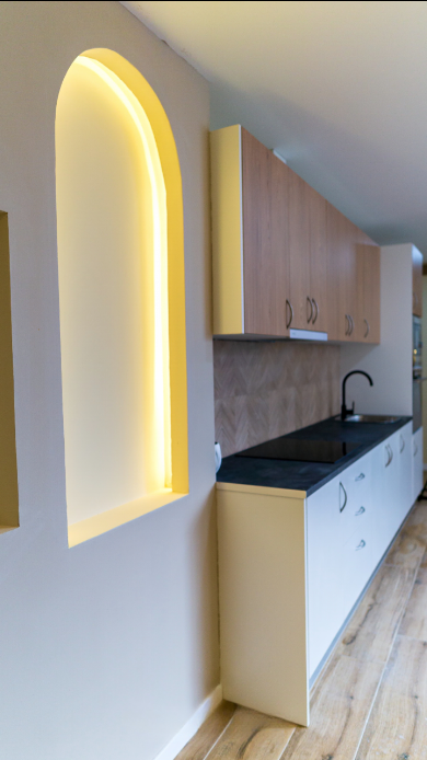 El resultado es una transformación integral que rompe con la idea de que los locales no pueden convertirse en espacios cálidos y funcionales. Ahora, este antiguo garaje es un hogar con identidad propia, equipado con tres habitaciones, una zona de día abierta y bien iluminada, una cocina moderna y un baño con carácter. Un espacio pensado para vivir bien, con estilo y confort.