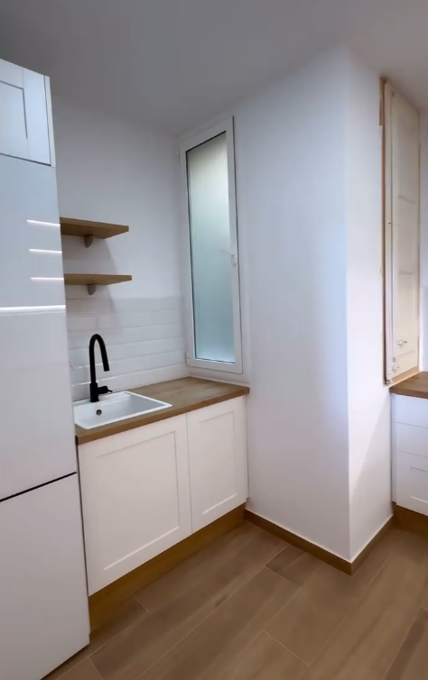 El principal objetivo de esta reforma era modernizar una cocina antigua, mal distribuida y con poca luz, transformándola en un espacio funcional, acogedor y estéticamente alineado con el estilo contemporáneo del resto de la vivienda. El cliente buscaba una cocina cómoda para el día a día, con buena capacidad de almacenamiento, fácil de limpiar y con un diseño que aportara calidez sin perder modernidad.